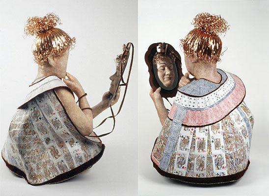 Plaster fabric, cards, mirror, copper, paint, ribbon, metal.